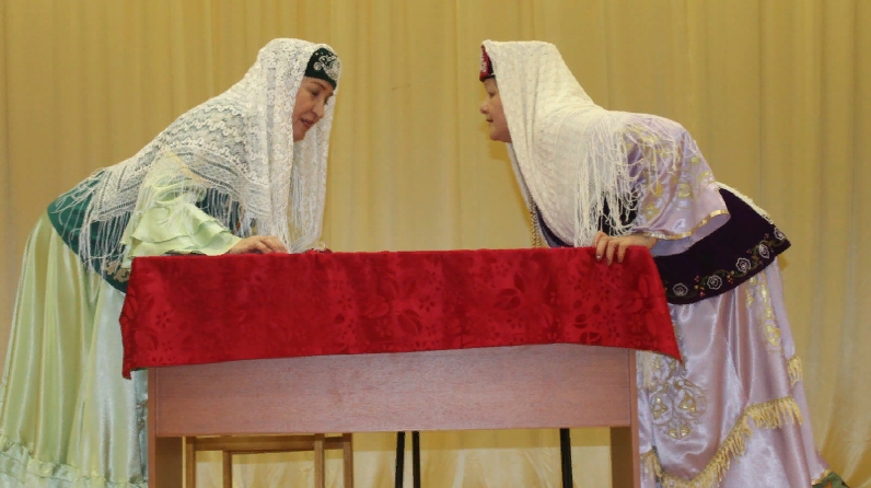 Почему мероприятие прошло в Утар-Атах, не в Арске? Наверное, многих интересует этот вопрос. Театрализованное представление, посвященное закрытию Года театра, прошло в Арском Доме культуры еще в декабре прошлого года. В нем коллектив народного театра «Җидегән чишмә» предложил спектакль «Беренче театр» («Первый театр») Галиаскара Камала, который переплетался выступлениями коллективов народных театров «Саяра», «Сердәш», «Нур».