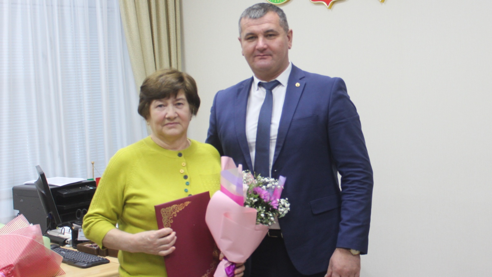14 декабря глава района Ильшат Нуриев поздравил начальника селекционно-племенной службы района Замхарию Зарифуллину с юбилеем, выразил благодарность за многолетний добросовестный труд. Он вручил ей Благодарственные письма министра сельского хозяйства и продовольствия Республики Татарстан и главы района.