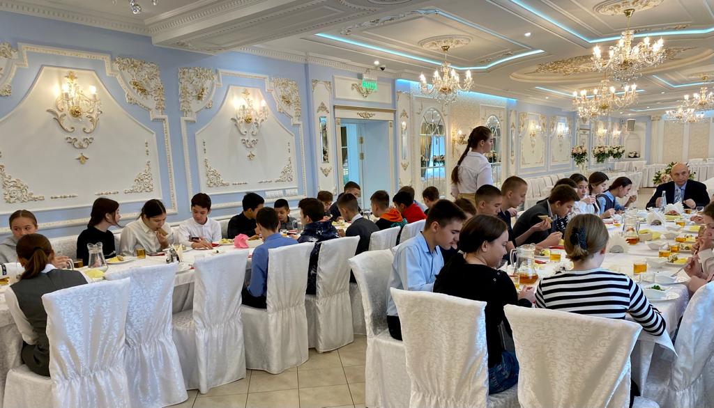 А после Рузаль Гараев пригласил всех на чаепитие в прекрасный зал «Венеции», где уже в дружеской обстановке он рассказал о своих детских годах, а ребята делились своими впечатлениями, полученными от экскурсии. Из АТП ребят проводили на новом комфортабельном автобусе, который прокатил их по улицам нашего города.