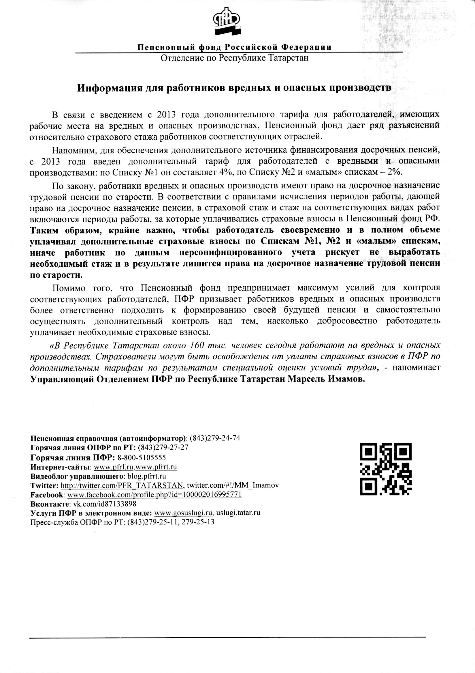 Информация для работников вредных и опасных производств