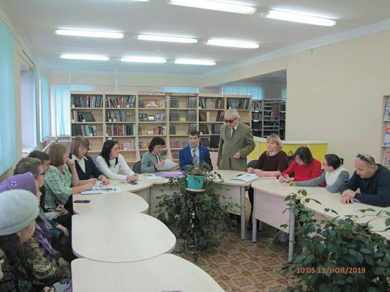 Ежегодно в ноябре отмечается Международный день белой трости в знак уважения, понимания и помощи незрячим людям. 13 ноября в Арской районной центральной библиотеке состоялась встреча за круглым столом членов общества слепых. На встрече приняли участие представители регионального общества слепых по Республике Татарстан, руководитель клиентской службы в Арском районе Рузия Нурмухаметова, руководитель центра занятости Гельфия Гибадуллина и руководитель отдела социальной защиты Лейсан Галяветдинова. Открыл заседание руководитель общества слепых Зуфар Зарипов. Была заслушана информация секретаря Арского общества слепых Лейсан Зариповой о проделанной работе за год, также остановились на имеющихся проблемах. Представители общества слепых поприветствовали всех участников круглого стола, отметили о значимости общества слепых в нашем районе и хорошей работе. Затем слово было предоставлено представителям организаций, занимающихся решением вопросов, интересующих незрячих и слабовидящих. Первой выступила Рузия Нурмухаметова. Она ознакомила всех с внесенными изменениями в области пенсионного обеспечения, о повышении пенсионного возраста, рассказала об удобствах, созданных для незрячих и слабовидящих людей в здании управления Пенсионного фонда для инвалидов в 2019г., в том числе для незрячих и слабовидящих, о возможности обращения в пенсионный фонд через портал государственных услуг, по предварительной записи, ответила на множество вопросов. Представитель регионального общества слепых выразил благодарность за активную работу всех членов общества слепых, а также активное и плодотворное участие в общественной жизни инвалидов. В конце встречи было организовано чаепитие, подарили незрячим и слабовидящим подарки. Круглый стол прошел в дружелюбной и торжественной обстановке.