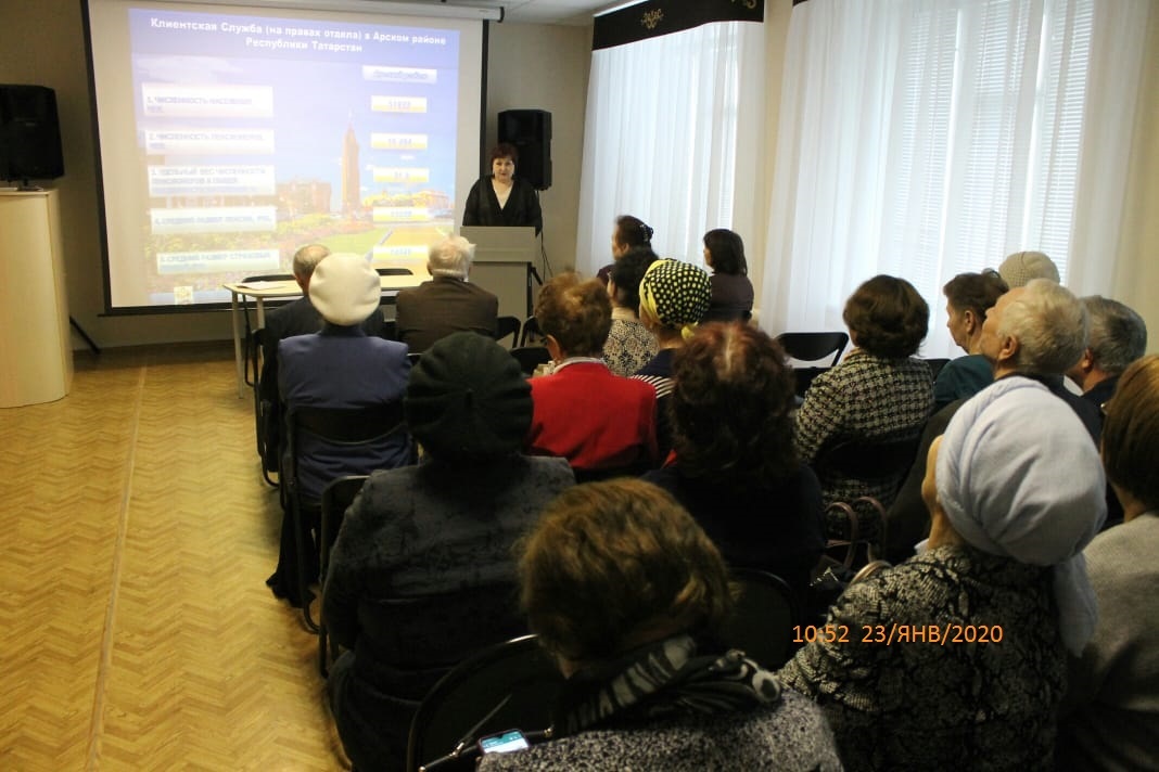 В читальном зале Арской районной библиотеки прошло очередное занятие школы правовых знаний при Университете третьего возраста. Занятие прошло с председателями совета ветеранов и пенсионерами. В нем приняли участие председатель совета ветеранов района Наиль Габдрахманов, председатель местного отделения союза пенсионеров Сания Камалетдинова, начальник отдела по работе с налогоплательщиками МРИ ФНС №5 Мунир Шайдуллин, директор республиканского центра материальной помощи Лилия Залялиева, главный специалист филиала №8 фонда соцстрахования Ильмира Гафурова, а также заместитель руководителя клиентской службы ПФР(на правах отдела) в Арском районе Гульназ Ибатуллина.