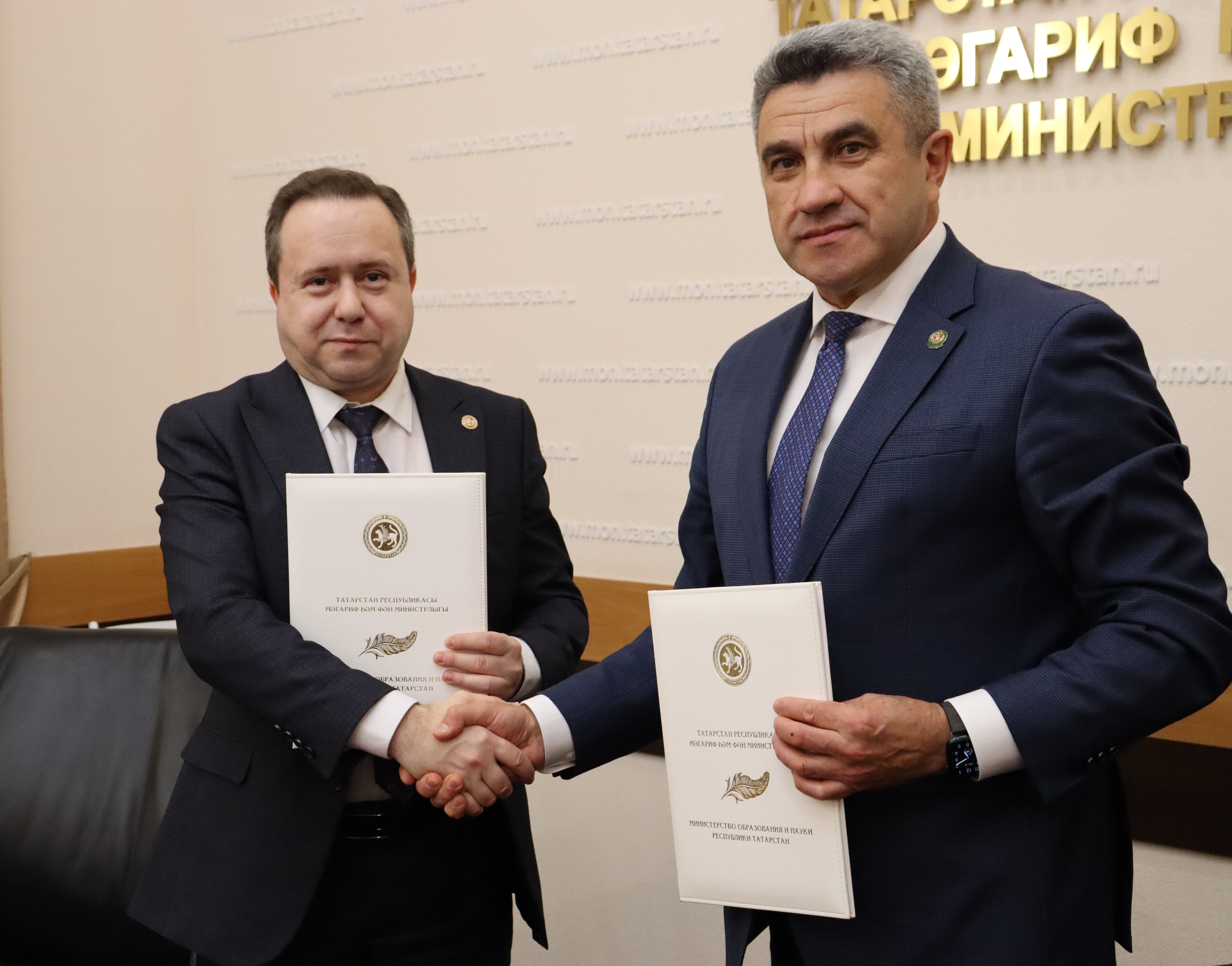Управляющий Отделением СФР по Республике Татарстан Эдуард Вафин и министр образования и науки республики Ильсур Хадиуллин подписали соглашение об информационном взаимодействии.