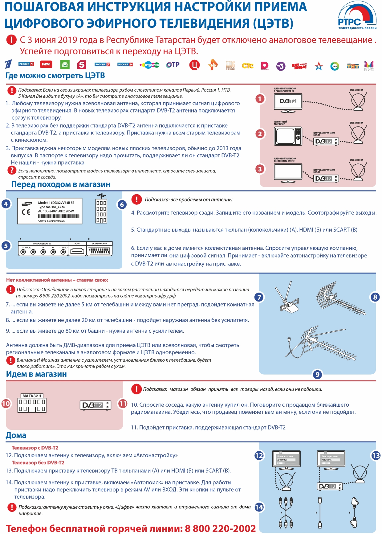 Татарстан Республикасында яшәүчеләр цифрлы эфир телетапшыруына 8-800-220-20-02 номеры буенча бердәм мәгълүмат үзәгенә күчү мәсьәләләре буенча мөрәҗәгать итә алалар.