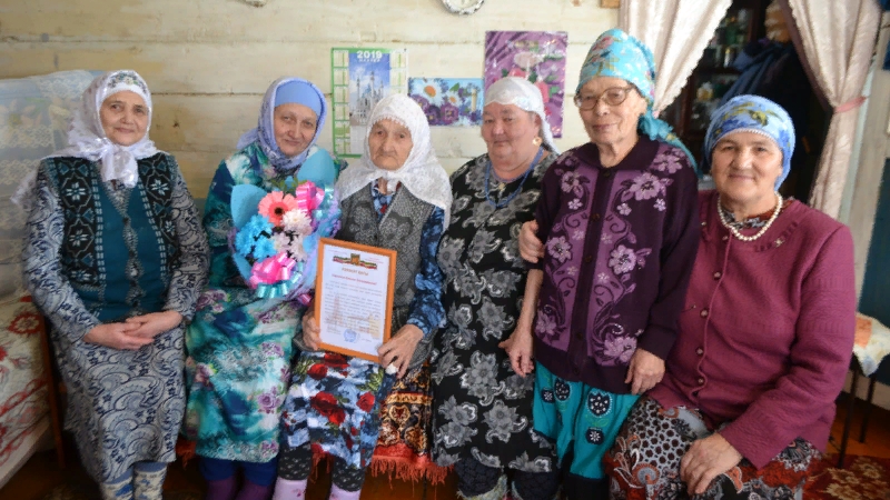 Хәтимә Сөләйманованы гомер бәйрәме белән котлап район башкарма комитеты җитәкчесе урынбасары Рамил Гарифҗанов РФ Президенты Владимир Путинның һәм район башлыгы Илшат Нуриевның Рәхмәт хатларын, чәчәкләр, бүләкләр тапшырды. Күрше-күлән апалар Рамил Гарифҗановка әби турында фикерләрен җиткереп калырга ашыкты. “Ул – авылыбызның ак әбие, киңәшчесе, һәркемгә ярдәмчел. Кирәк булса, балаларны, оныкларны да карап, күз-колак булып тора”, – диләр. Ә авылның имам-хатыйбы Радик Кәримов Хәтимә апаны “Авылның аяклы тарихы, үткәннәрне аңардан сораштырабыз, зиһене дә әйбәт, шөкер”, – ди. Әбинең туган көнен котларга килгән Радик хәзрәт аның исәнлегенә Коръән аяте багышлады.