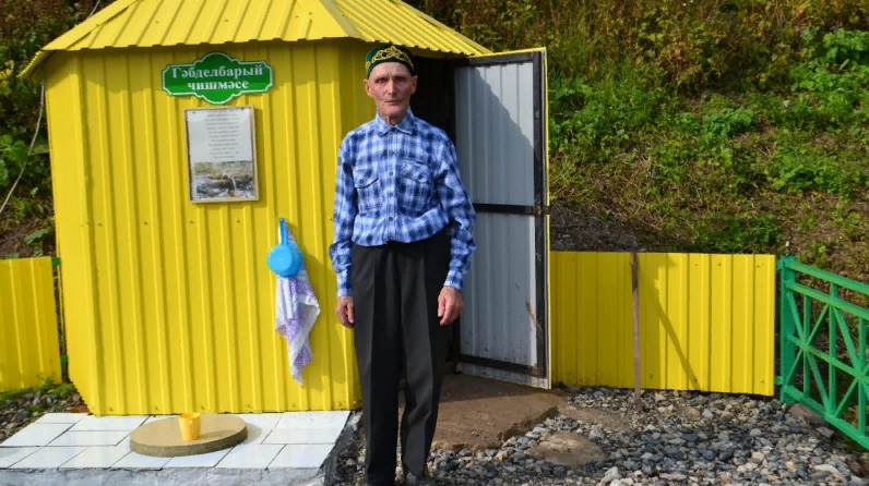 – Кортлар тотам мин. Өй артында да бар, авылдан бераз читтәрәк умарталыкта да. Умарталыкка барганда тау кырыенда бер урында су саркып утырганын күреп, үткән-барганда башта таяк белән кәшәләп, аннан кул белән актарып китә торгач, су юлы барлыгын белеп алдым. Чишмә ясап, аңа тормыш бирергә булдым. Башта суы әйбәт килде, аннан нык кимеде. Янында тагын бер чишмә казыдым, – диде ул. – Тау кырыйлары әрәмәлек иде, аны чистарттым. Тирә-юне сазлык. Дүрт трактор балчык, ике трактор вак таш кына китте. Коймасын ясарга Дамир, алачыгын эшләргә Марсель исемле авылдашларым булышты. Манарасын Биектаудан сатып алып кайттык. Балаларым да бик зур ярдәм итте. Барысына да рәхмәтлемен. Миңа бу чишмә үз балам кебек кадерле.