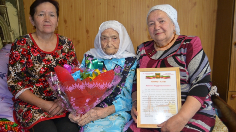 Район башкарма комитеты җитәкчесе урынбасары Рамил Гарифҗанов аны олы юбилее белән котлады, Россия Президенты Владимир Путинның, район башлыгы Илшат Нуриевның Рәхмәт хатларын, истәлек бүләге һәм чәчәк бәйләме тапшырды.