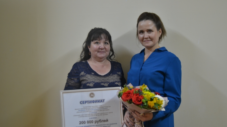 Клуб мөдире Ләйсән Шәфигуллина һәм клубның сәнгать җитәкчесе Ильмира Зарипова белән бүләк алган көнне күрешеп сөйләштек.