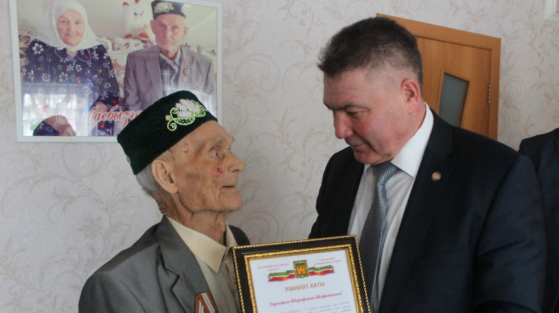 14 мартта район башлыгы Илшат Нуриев Зур Бирәзә авылында яшәүче Бөек Ватан сугышы ветераны Шәрифҗан ага Шәфыйковка “1941–1945 елларда Бөек Ватан сугышында Җиңүгә 75 ел” юбилей медале, бүләк тапшырды. 18 ветеранга мондый бүләкләр тапшырылган иде инде. Шәрифҗан ага яңа гына хастаханәдән кайтты.