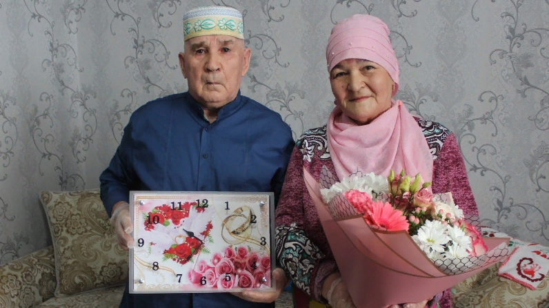 Район башлыгы Илшат Нуриев Халыкара гаилә көнендә Арча шәһәрендә яшәүче Хәсибә һәм Вәлиулла Гатауллиннарны алтын туйлары белән тәбрикләде.