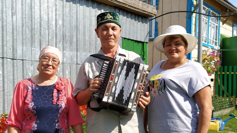 Узган ел мин аларны Яңа Кырлайда булган “Ат көне”ндә күрдем. Җигүле атта гармунда уйнап, матур итеп җырлап, мәйдан әйләнде алар. Шул вакытта алар белән якыннанрак танышырга дип күңелгә беркетеп куйдым. Без аларга Шушмабаш мәдәният йорты җитәкчесе Динә Әхмәтҗанова белән килдек. Рәхмәт Динәгә, бик күркәм кешеләр белән таныштырды ул безне!