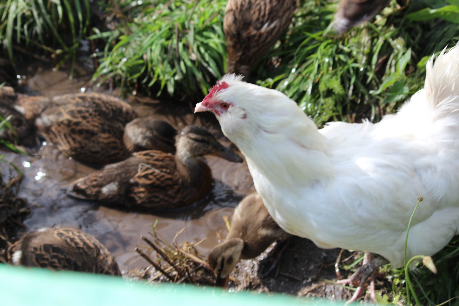 Тугыз ятимнең әнисенә әверелгән әлеге мәрхәмәтле тавыкны торналар төшкән җирдән ерак түгел күл буенда очраттык. Аның тарихы кызыклы һәм кешеләр өчен дә гыйбрәтле. Шәйдулла Имамовичның улы Айзат бензин чалгысы белән үлән чаба. Шунда чалгы астыннан бер үрдәк чыгып оча, ярый әле чалгы койрыгын гына кыркып кала. Әмма курыккан ана ояга башка кайтмый...