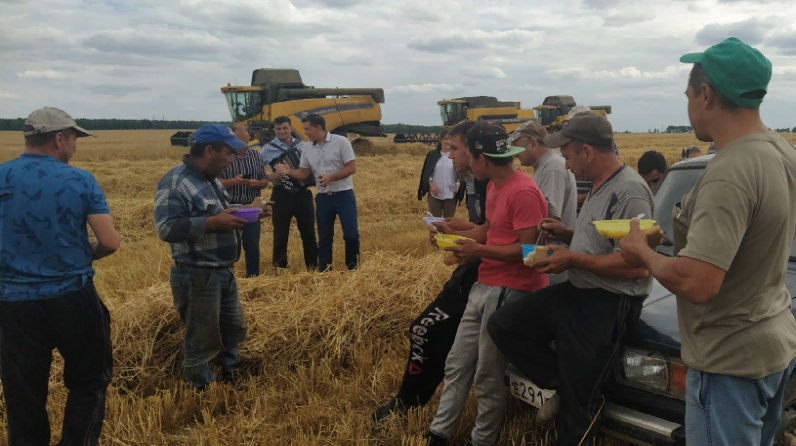 Быелгы сезонны алар “Ак барс” агрокомплексы” ширкәте басуында комбайнчылар алдында чыгыш ясаудан башлады. Концерт игенчеләрнең әбәт белән кичке аш арасында тамак ялгап алган вакытына туры килде. Басу тутырып эшләүчеләр һәммәсе бер урынга җыелып, бер-берсе белән очрашып аралашты да, матур җырлар тыңлап тамак та ялганды. Куәтле комбайннарны иярләүче кыр батырларына уңышны имин генә җыеп алып, хәвеф-хәтәрсез эшләргә язсын! “Бу арада көннәр коры торганлыктан, вакытында игенне җыеп калыйк дип тырышабыз. Кичә иртәнге 3 нче яртыга кадәр эшләдек. Иртән 7 дә тагын басуда инде без”, — ди Радик Фәйзрахманов. Комбайнчылар арасында Сикертән мәктәбенең физкультура укытучысы Разил Нәбиуллин да бар. Алтынчы ел җәен кыр корабы руле артында икән инде. “Гомумән, комбайнда эшләгән елларым 20 тирәсенә җыела. Мәктәптә укыган елларда ярдәмче булып эшләдем, армиядән кайткач берничә ел үзем өлкән комбайнчы булдым, хәзер җәйге сезонда ширкәткә ярдәм итәбез. Авылда терлек асрап яшәгәч, эшләгәнгә ашлыгы, печән-саламы да бирелә, үзебезгә дә файдалы”, — ди ул. Механизаторлар, игенчеләр исеменнән агитбригада үзешчәннәре Расих Галимҗанов, Данис Гайфуллин, Динар Бариев, Адилә Салихова, Зөлфәт Сибгатуллин, Марат Котдусовка рәхмәтен җиткерде укытучы-игенче.
