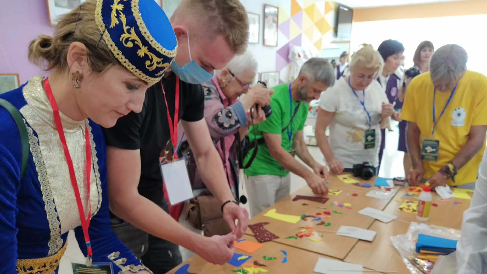 Аннан чират кунакларның үзләренә җитте. Рәссамнар, кулланма сәнгать осталары хезмәтләре белән төркем җитәкчесе Вероника Чеканова таныштырды. Чигеп, тукымага ясалган картиналар, милли бизәкләр төшерелгән кулланма сәнгать әсәрләрен сокланып карадык. Аларның күбесе тарих белән бәйле, кайберсе хәтта 15 гасырларга барып тоташа. Моннан ничә гасыр булган әйберне картина итеп ясау өчен осталык кына җитми, тарихны яхшы белү дә кирәктер, мөгаен. Чыннан да, һәрберсе үз эшенең остасы!