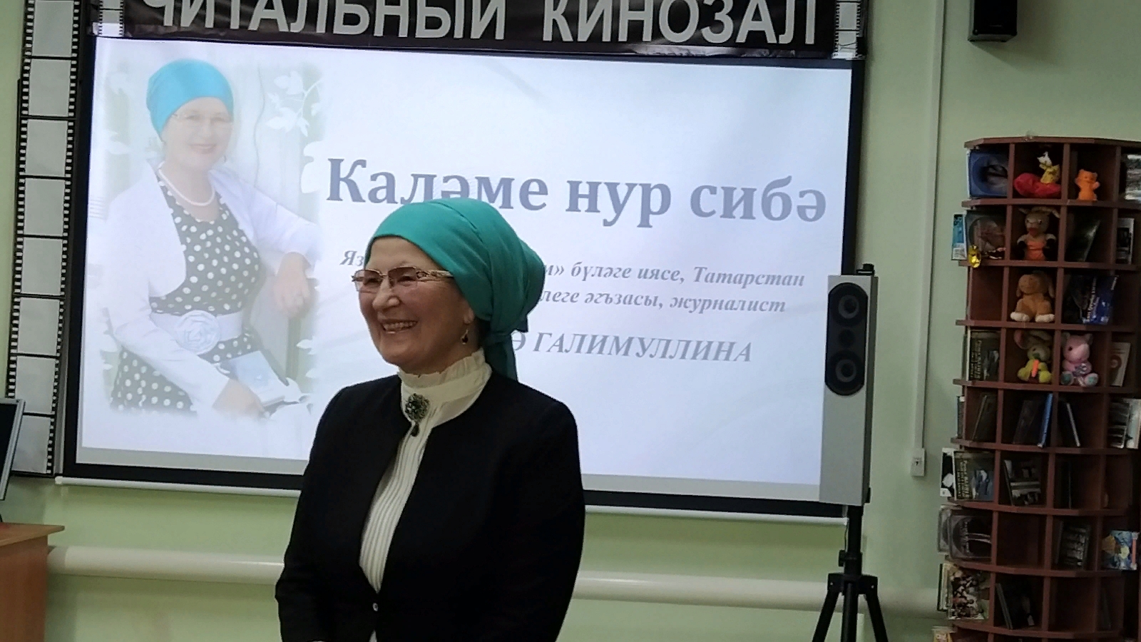 Китапханә хезмәткәрләре матур очрашу әзерләгән иде. Ә безнең язучы апабыз кызыклы шәхес. Үзен гади тота, сорауларга кызыклы итеп җавап бирә. “Минем әсәрләремдә уйдырма геройлар юк, – диде ул. – Мин аларны тормыштан алам”.
