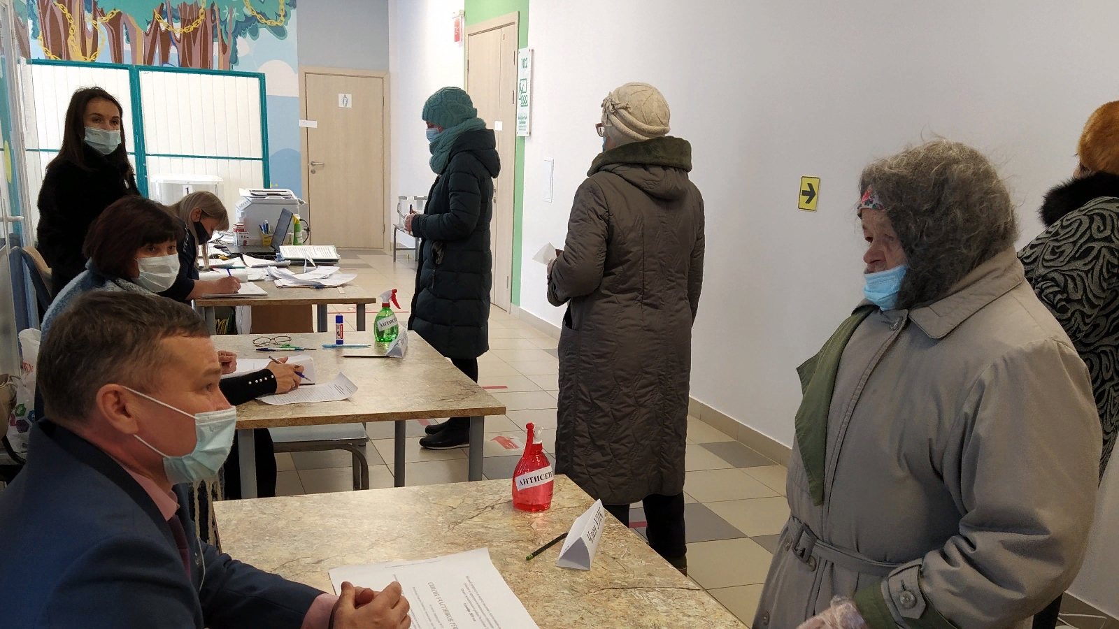 Якшәмбе көнне референдум барышы белән танышу максатыннан 6нчы мәктәптә урнашкан 935нче номерлы сайлау участогында булдык. Ишектән керүгә һәр кешенең тән температурасын үлчиләр, антисептик, битлек, пирчәткә, ручка тәкъдим итәләр, дистанция саклауны сорыйлар. Идәнне өзлексез сөртеп, бүлмәне даими җилләтеп торалар, ишек тоткаларына дезинфекция чарасы белән эшкәртелгән марля уралган. Бер як ишектән керсәләр, чыгу өчен икенче ишекне ачканнар.