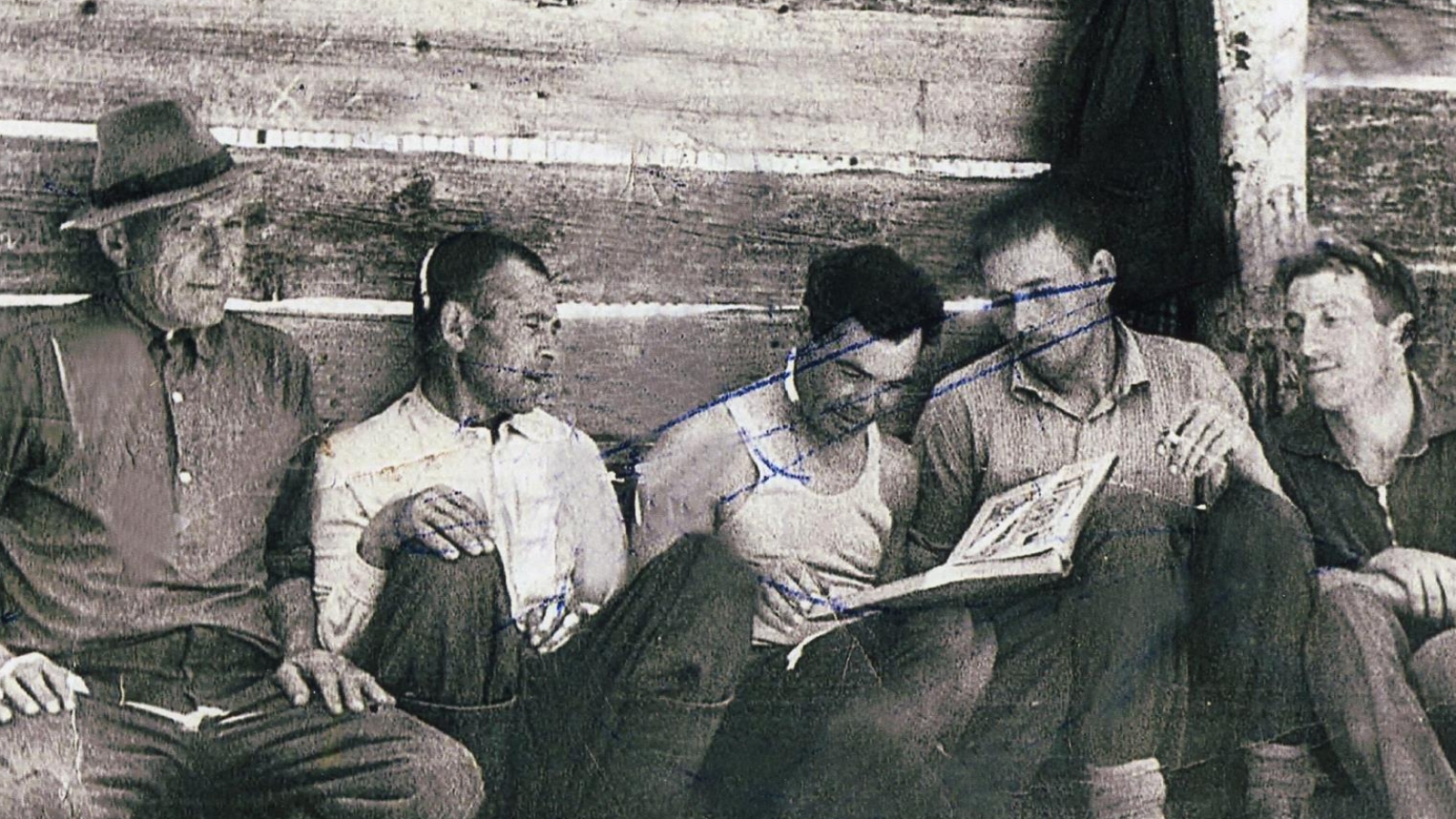 Авылыбыз заманында балта осталары белән данлыклы иде. Шәриф, Шәйдулла, Минхәер Вафиннар, Сәфәр Сафин һ.б. Корайванда гына түгел, күрше-тирә авылларда да бик күп йортлар салган кешеләр. Әлеге рәсемдә Шәриф абый белән Минхәер абый янәшә утыралар. Алардан соң – Вәгыйз абый Шәмсетдинов. Ул итекчеләр авылы – Курса-Почмактан, Корайвандагы туганнары Хапса апаларда үсте, ул да итек басты. Соңрак Сарай-Чокырчага күченделәр. Уңда иң кырыйда – Мөдәрис абый Вафин. Нинди эш кушсалар – шуны башкарды, Тәнзилә апа белән 8 бала үстерделәр.