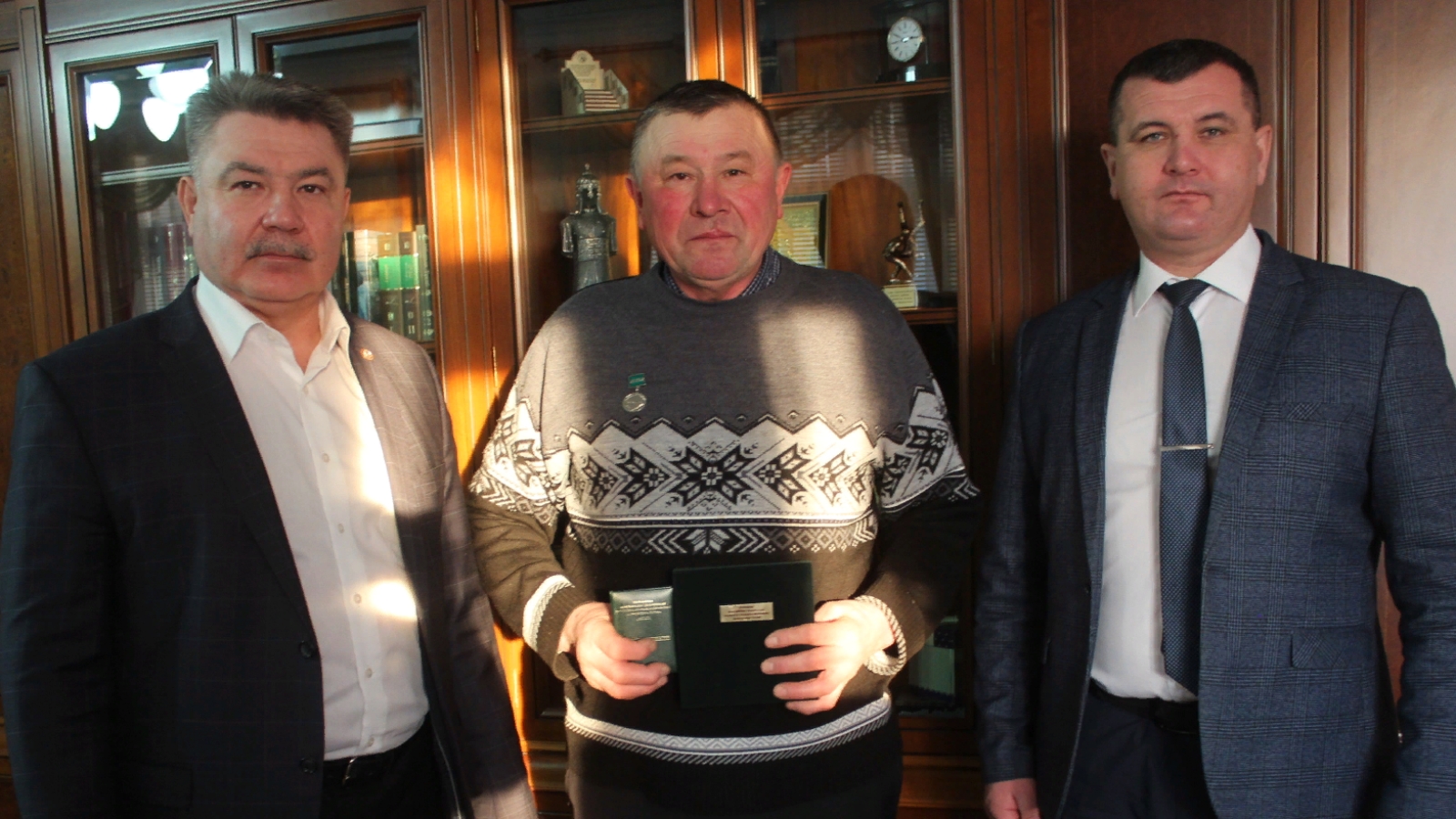 Күптән түгел Хәлим Гарипов Мәскәүдә Россия фермерлары съездында катнашты. Анда аңа “Атказанган фермер” медале тапшырдылар. Якташыбыз өчен генә түгел, бөтен район өчен шатлыклы вакыйга булды бу. Мәскәүдән кайтуга Хәлим Гариповны район башлыгы Илшат Нуриев кабул итте. Ул аны лаеклы бүләк алуы белән котлады, хезмәте өчен рәхмәт әйтте, уңышлар теләде.
