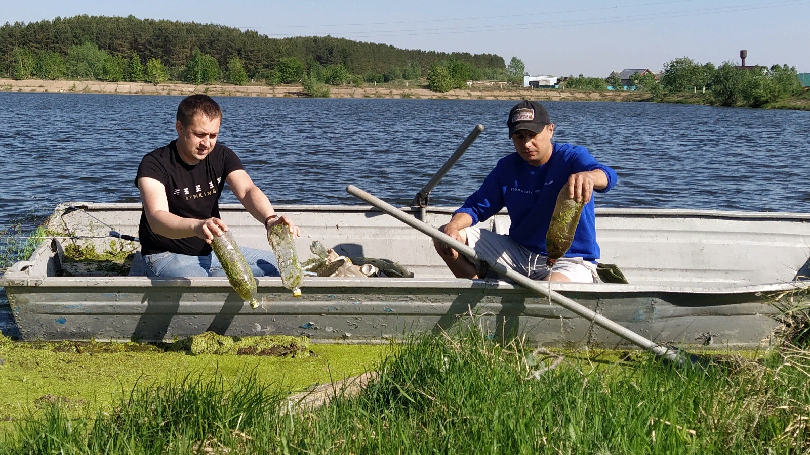 Районда саваплы эшләре белән танылган Руслан Әһлиев һәм шәхси эшмәкәр Алмаз Шәфигуллин күл буен тәртипкә китерүне үзләренең бурычлары итеп санап, өч сәгать вакытларын әлеге эшкә сарыф иттеләр. Биредә эшләүчеләрдән көймә алып, егетләр су буйлап чүпне иң элек шул көймәгә җыйдылар, аннан соң чүп пакетларына тутырдылар. “Монда гына түгел, күп кенә сулыкларда да шушы хәл. Волонтер буларак минем командама килергә теләүчеләр булса, рәхим итегез. Бергә һәм бердәм булганда чисталыкны саклау җиңелрәк булачак”, – диде Руслан.