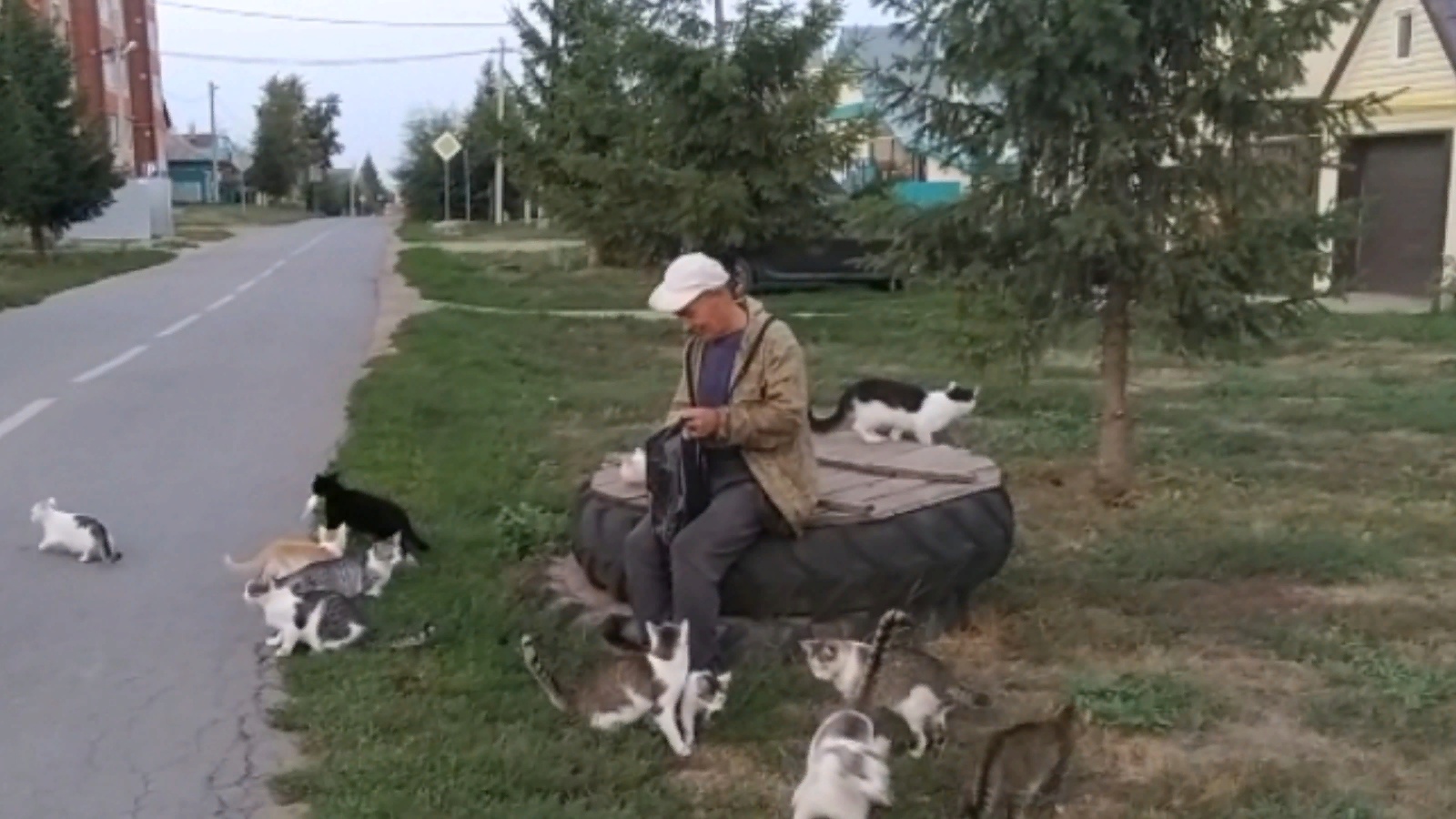 Видеода күрсәтелгән күренеш, чыннан да, дөреслеккә туры килә. Виктор Носов көн дә Казансу елгасына балыкка йөри, вак кына балыклар тотып кайта һәм шуларны урам мәчеләренә бүлеп бирә. Алар моңа шулкадәр ияләшкән, балыкчыны юлда, юл кырыйларына тезелеп көтеп торалар. Ул чат башында күренүгә дәррәү каршына йөгерәләр.