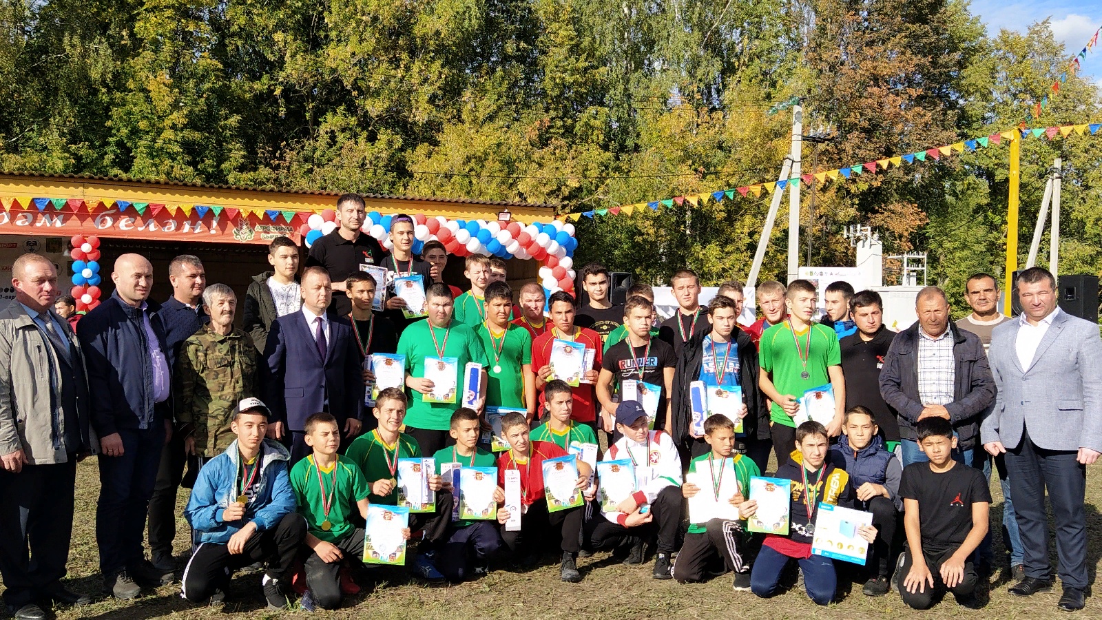 Көрәшүче малайлар күп иде. Көрәш алай тиз генә бетмәде. Бәйрәм мәйданында көтеп алдылар үзләрен. Әнә, үзләре дә, зур мәйданга чыгып, тезелеп бастылар. Яннарында тренерлары. Район көрәш федерациясе рәисе Ринат Алеев та шунда. Котлаулар башланды! 9 үлчәү авырлыгында 1нче, 2нче, 3нче урыннарны алган егетләр бер-бер артлы пьедесталга күтәрелделәр.