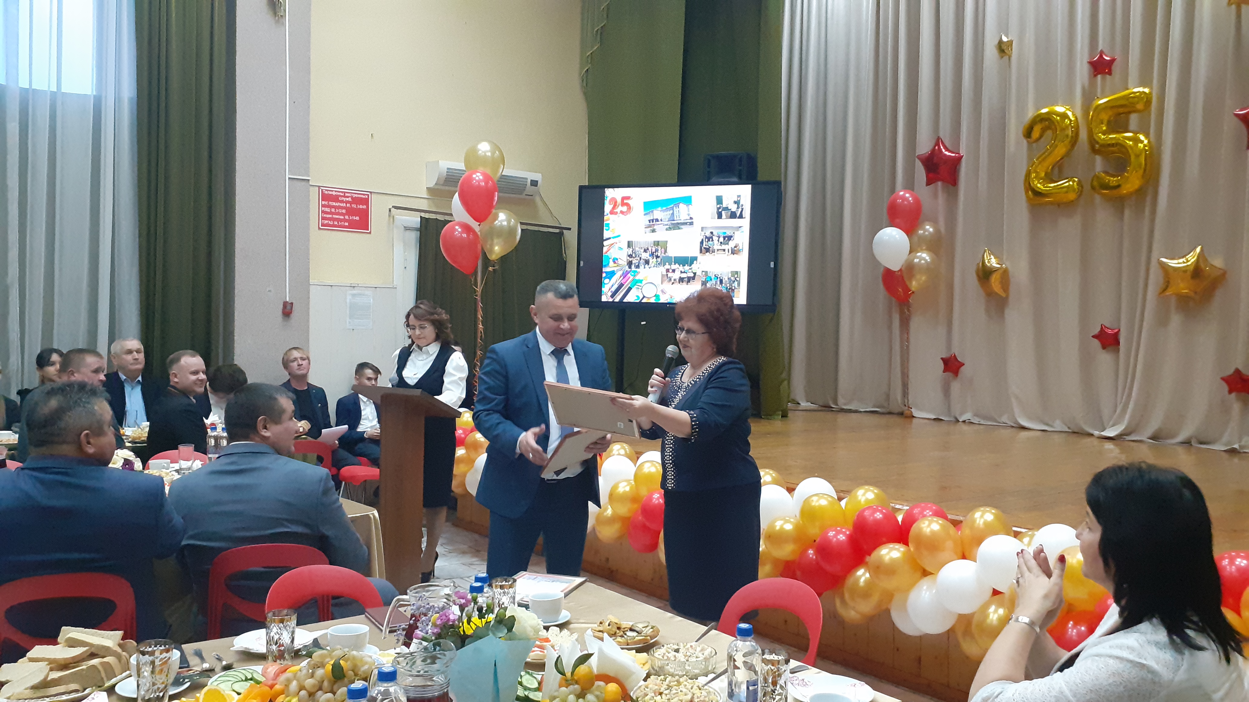 Гимназия коллективы укучы-ларның әти-әниләре белән һәрвакыт элемтәдә торып, кулга-кул тотынып эшли. Бәйрәмдә әти-әниләр исеменнән ТРның атказанган артисты Лилия Хәмитова чыгыш ясады. Рәхмәт һәм котлау сүзләрен җиткереп, матур җырларын яңгыратты ул. Шулай ук җырлы бүләкләр арасында Рузалия һәм Фидарис Мортазиннар чыгышлары да бәйрәмне бизәде. Район мәдәният идарәсе җырчылары да матур җырларын бүләк иттеләр.