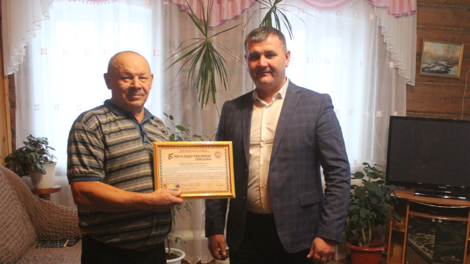 Ренат Мансурович юбилярга ТР Авыл хуҗалыгы һәм азык-төлек министрлыгының, район башлыгының Рәхмәт хатларын тапшырды.