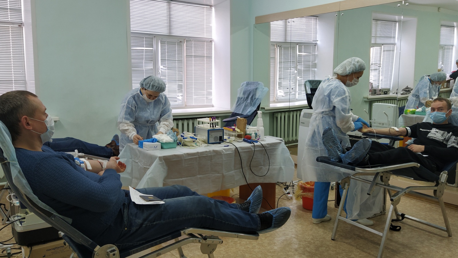 Медицина өлкәсендә эшләүчеләр аерым бер төркем булып чират торалар. Сөйләшеп киттек. “Резедә Пет-рова булам, – дип таныштырды үзе белән иң беренче чиратта торган ханым. – Арчада яшим. 61 яшьтә. Хәзер лаеклы ялда. Иң беренче тапкыр Пензада заводта эшләгәндә кан бирдем. Бер авыруга кан кирәк булды, әйттеләр дә, мин ризалаштым. Хәзер инде 40тан артып китте”. “Димәк, сез мактаулы донор, ә сез үзегезне герой дип саныйсызмы?”. “Юк, – диде Резедә ханым. – Бердән, кан тапшыргач, организмга рәхәт булып китә, икенчедән, кемгәдер ярдәм итү, кемнеңдер гомерен сак-лап калу, ул бит әйтеп бетергесез рәхмәтле гамәл!”.
